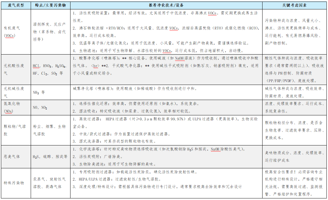 2.尾氣凈化設(shè)備選擇 (核心針對(duì)廢氣類型)
