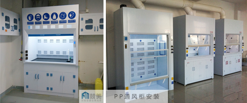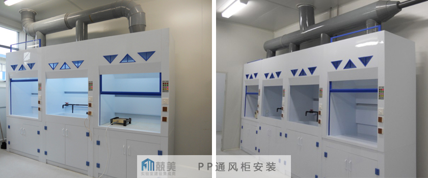 4、通風柜柜頂通風系統:通風柜專用PP風機、ф250PVC通風管道、風量達1500立方/小時