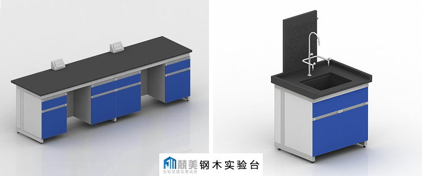 (3)實驗臺柜體、門板及面板:采用國產18mm厚E1級三聚氰胺成型板,PVC封邊,防水處理;單、雙門柜或上抽下門柜內內有一層活動層板,分兩層放置器材等物。在有水管,電線連接的部位,背板應設活動擋板。